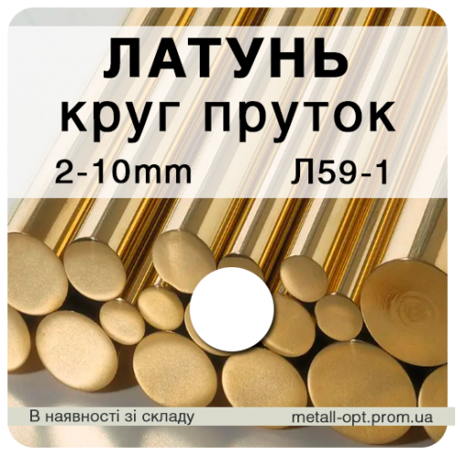 Круг латунний Пруток, коло латунь ЛС59-1 діаметром від 2-10 мм